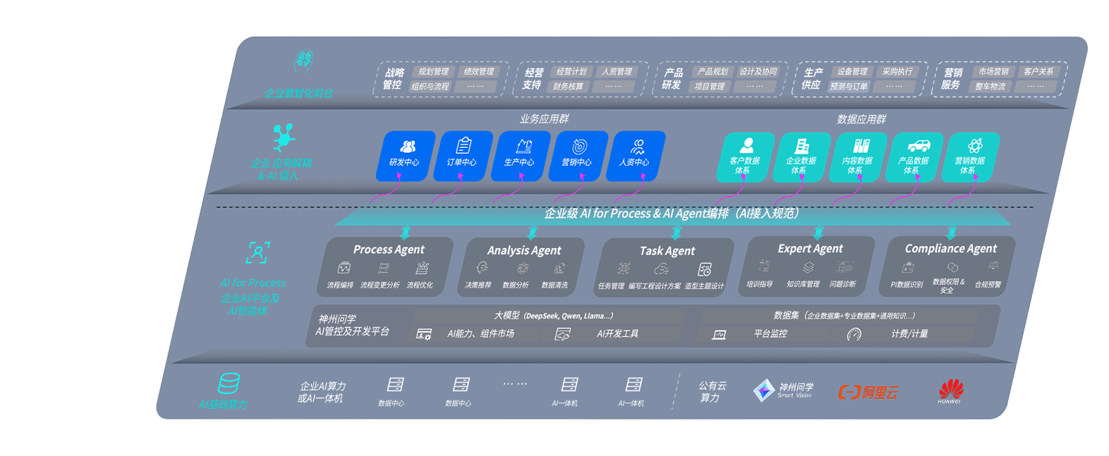 AG尊龙凯时问学智车解决方案是一套基于AI技术的汽车行业智能化系统,,,覆盖从底层算力到顶层AI应用的全栈方案。。。方案由算力层、、、模型层和应用层组成:算力层,,方案支持多种一体机配置,,,,具备云端灵活部署、、、多云适配以及动态优化计算资源的能力;模型层,,,,AG尊龙凯时问学平台版提供了企业级AI应用一站式构建与管理平台,,,支持基于后训练强化技术的汽车企业专属模型的训练、、评测和运营;应用层,,,,AG尊龙凯时问学DeepSeek版提供包括超级员工、、智能招采、、智能营销、、智能客服、、AI for BI等一系列解决方案,,,可助力汽车行业实现数字化转型,,,让管理更智能、、响应更敏捷。。。。