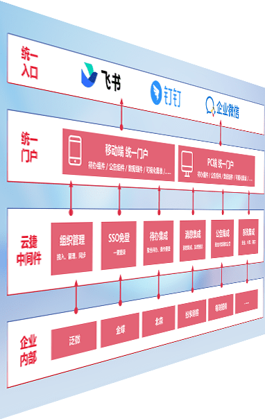 对协作平台提供支持服务,,,支持企业应用与协作平台对接,,,,包含组织同步、、、、消息集成、、待办集成等。。。支持目前主流的协作平台:钉钉、、、、企微和飞书。。。。